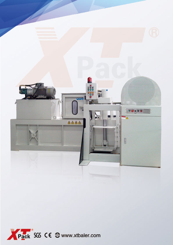 型号 XTY-300WB7070 XTY-400WB7280 XTY-600WB10080 压力 30tons 40tons 60tons 主机功率 11kw 11kw 18.5kw 冷却 N/A N/A air cooler/water cooler 循环时间(空载) 27s 19s 23s 油箱尺寸 240L 240L 550L 捆包道数 3lines 4lines 4lines 捆包铁丝规格 Ø2.4-2.7 Ø2.4-2.7 Ø2.7-3.0 加料口尺寸 (L*W) 700*690mm 1000*700mm 1380*980mm 压缩腔尺寸 (L*W*H) 1700*690*690mm 2200*700*780mm 2400*980*780mm 包块尺寸 (L*W*H) 900*700*700mm 1000*720*800mm 1000*1000*800mm 打包密度 (OCC) 400-500kgs/m3 400-500kgs/m3 450-550kgs/m3 产量 ( 大概/与原材料密度和操作人员的速度决定) 0.5-1ton/h 0.5-1ton/h 1-2tons/h 机器重量 4tons 4.5tons 5.2tons 机器外观尺寸 4200*1100*1900mm 5500*1100*2000mm 6100*1400*2000mm 送料装置 cyclone / conveyor cyclone / conveyor cyclone / conveyor