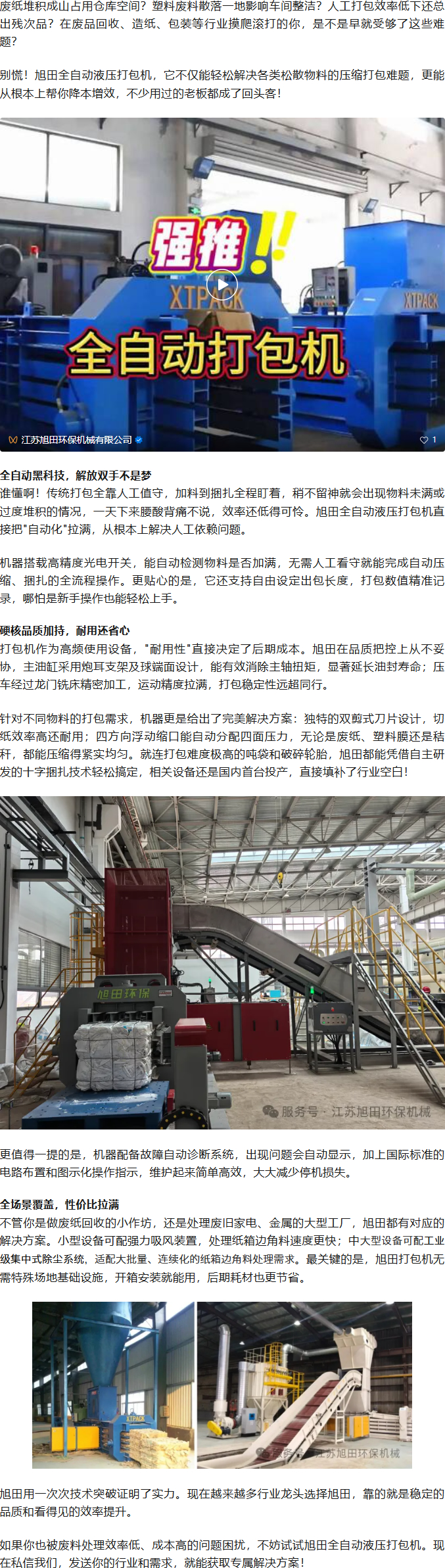 还在为废料处理发愁?旭田全自动液压打包机让效率翻番!